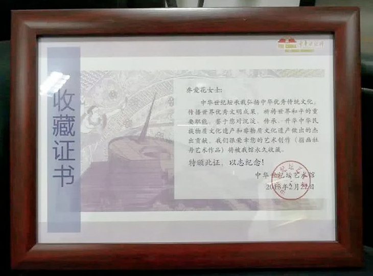 三幅牡丹图作品被"中华世纪坛"收藏